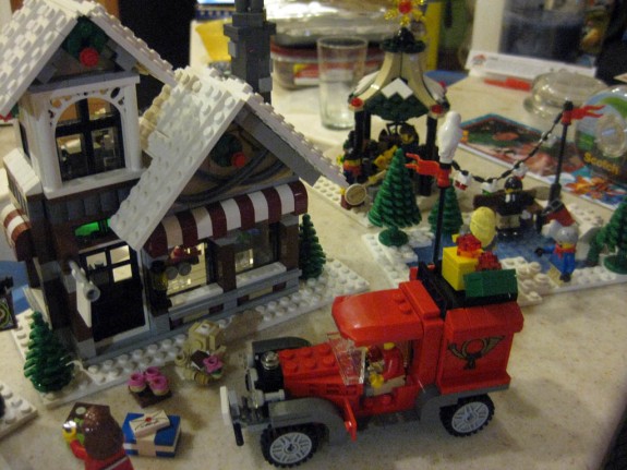 I really love this little holiday series that LEGO started last year, first with the bakery and toy store, and now adding to it this year with the village post office – it’s like our own personal version of one of those fancy, holiday villages made out of porcelain that people work on meticulously throughout the year, although ours goes back together a lot easier if/when something breaks!