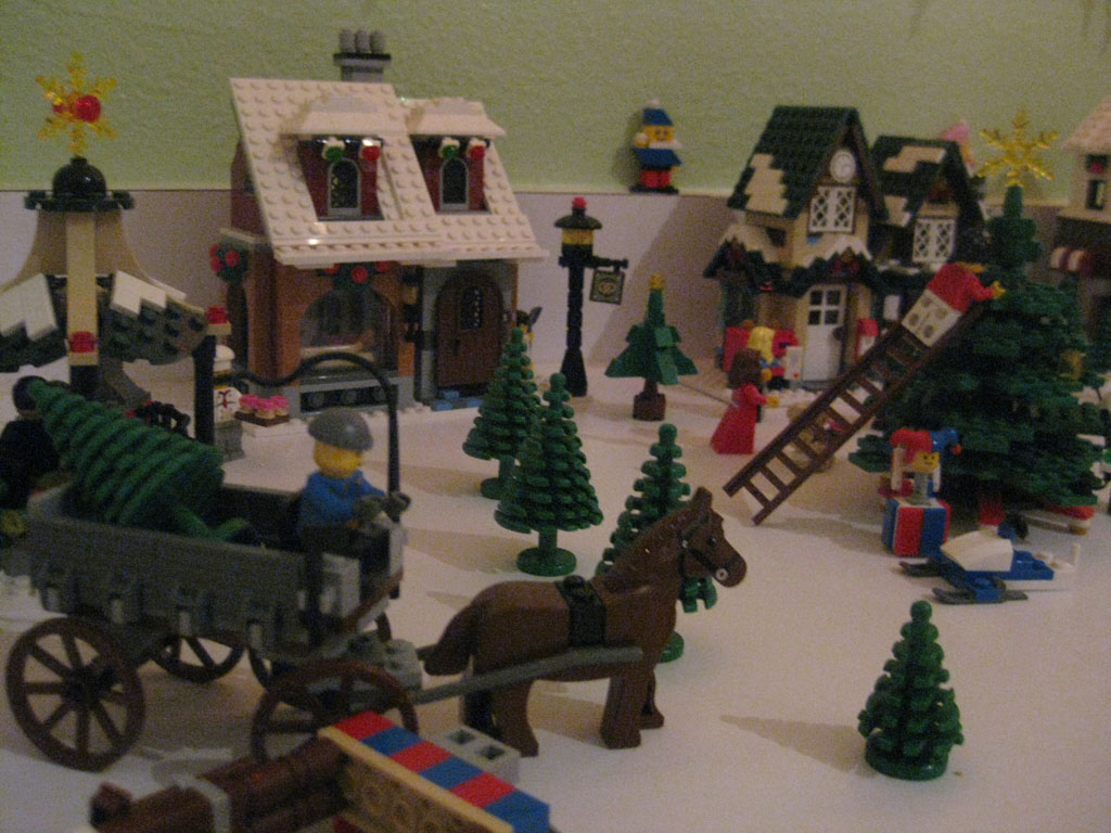 And thanks to last year’s advent calendar (and an alternate from the Collectible Minifig Series), we’ve even got our very own Lego Santa Claus, preparing to slip down the chimney and deliver toys for all of the good little boys and girls of our winter village – how cool is that?!