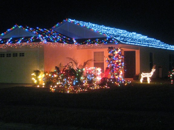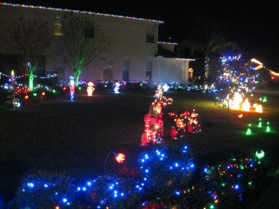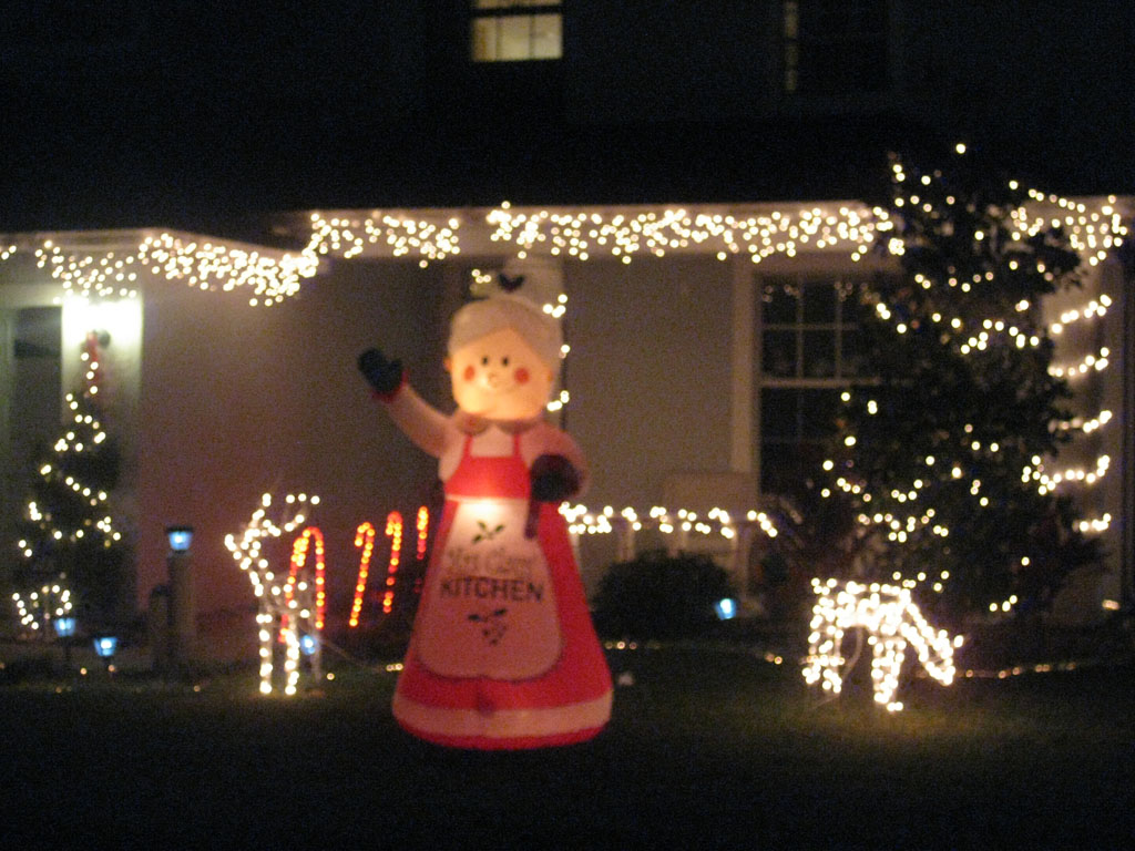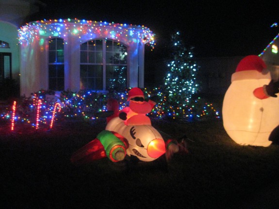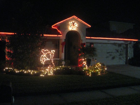 Though admittedly I was kinda hoping to find that the neighborhood we moved into earlier this year would be a hotbed of outdoor decorating enthusiasts who all put just as much joy into illuminating their houses for the holidays as I do, I suppose as a consolation prize at least I can say that one of the neighborhoods nearby that I’ve been walking Cleo around seems to have at least a handful of homes colorfully decked out with the Christmas spirit on each block.