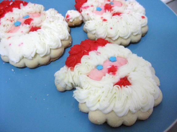 She makes them in everything from Christmas trees to stars, snowmen and candy canes, but just between you and me, the Santa ones are pretty much the best cookies on Earth… 😉
