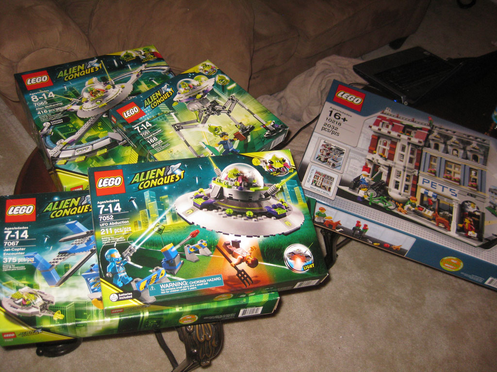 This weekend Sara and I have been kicking back around the house, watching whatever random Christmas movies we can find on TV and putting together some new sets – my wife, the Pet Shop modular building we got from my Mom for Christmas, and me, a veritable stockpile of the Alien Conquest sets that I’ve been saving for a rainy day!