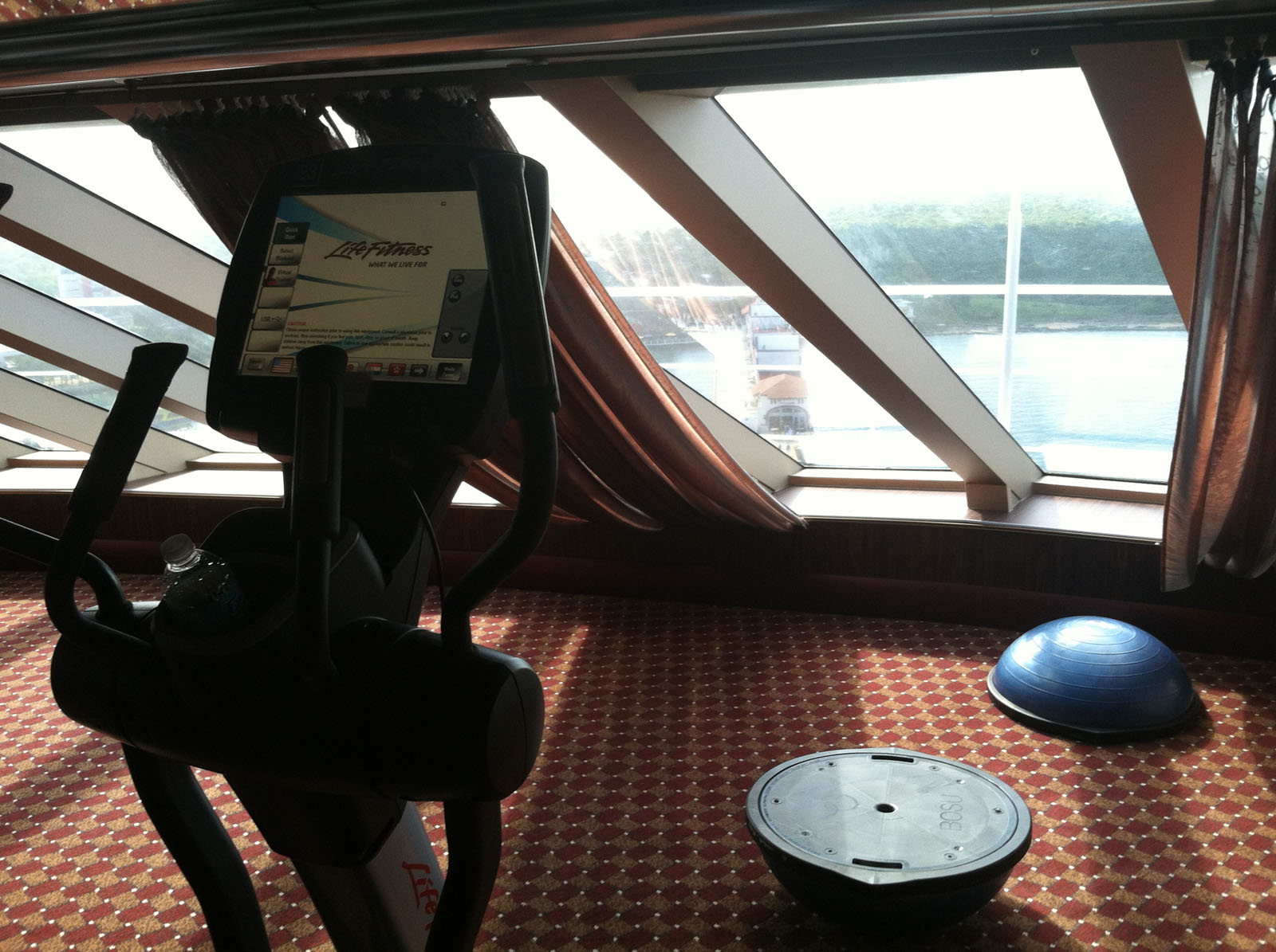 …was pretty awesome! We ended up splurging for a room up on the spa deck (#12), which is the highest deck with guest rooms on the ship and also considerably smaller than any of the main areas, so for the most part it was a little bit quieter and secluded. Plus, it was literally right around the corner from the gym & spa, which made it a little easier to actually go on a regular basis! Also, for whatever reason, we kind of had two bathrooms in our room – or at least two showers & sinks, anyways, which made it a lot easier for us both to get ready at the same time!!!