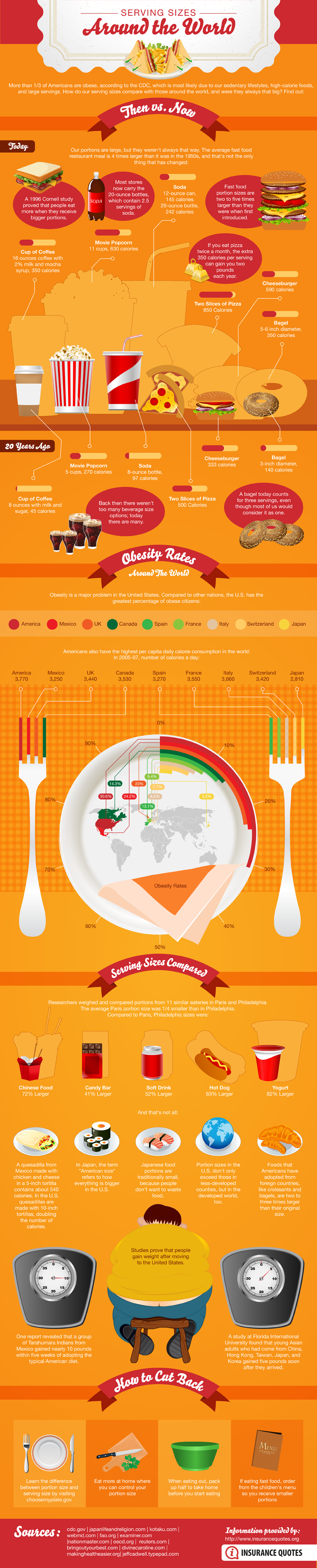 I know that one of the other huge differences in obesity from my parents’ and grandparents’ generation to my own is that they tended to work more manual labor-ish jobs (“down on the farm…”), whereas I for one these days pretty much just sit in front of a desk all day, but these accepted serving sizes certainly don’t help, either! We’re taught to empty our plates and go back for seconds at the buffet because it’s a good value, and at the same time we’re often consuming more calories than we should all day in a single meal… 😯