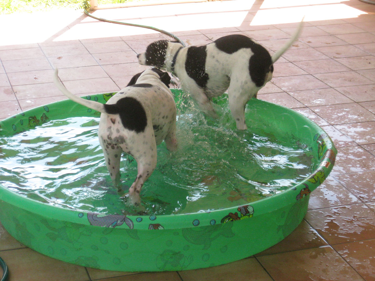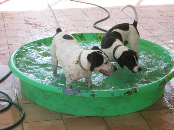 Puppy Pool Party Fun! – Cleo had one of her brothers over to celebrate their birthday, as you can see quite evidently below with their joyful romps in Cleo’s new pool! And people say that we spoil our puppy… 8)