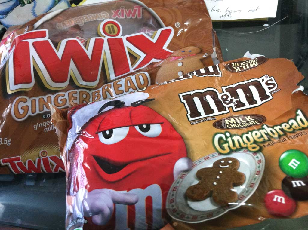 Just for the record, the Gingerbread Twix were actually pretty good, but the M&Ms tasted weird to me … almost more nutty than gingerbready.