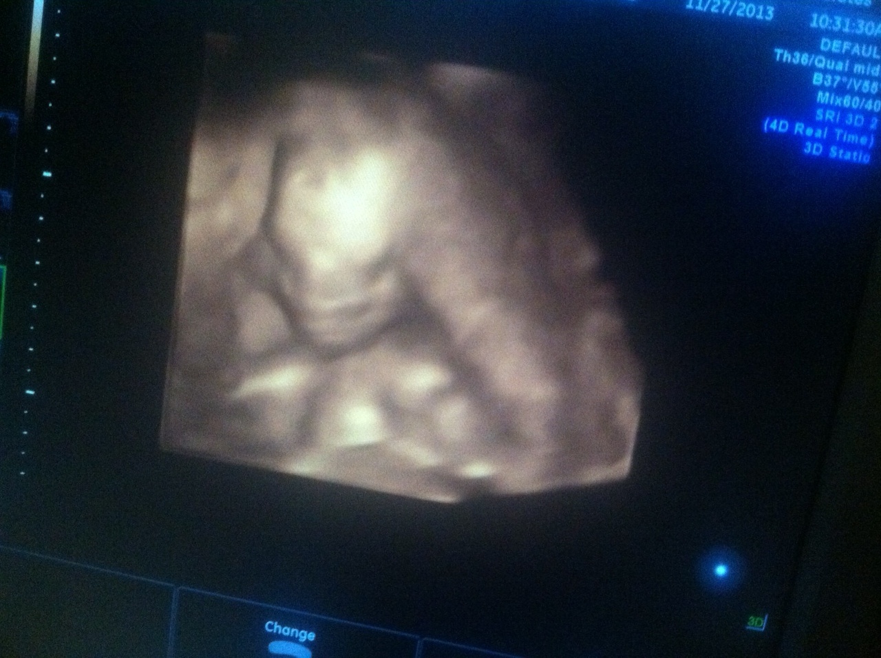 Just kidding – it’s my own kid and I still think that these 4D ultrasounds are creepy as all get-out! The doctor did say that as he gets closer to birth, he’ll start to look more … human, but in the meantime, if that isn’t a little devil face, I don’t know what one is… 😯
